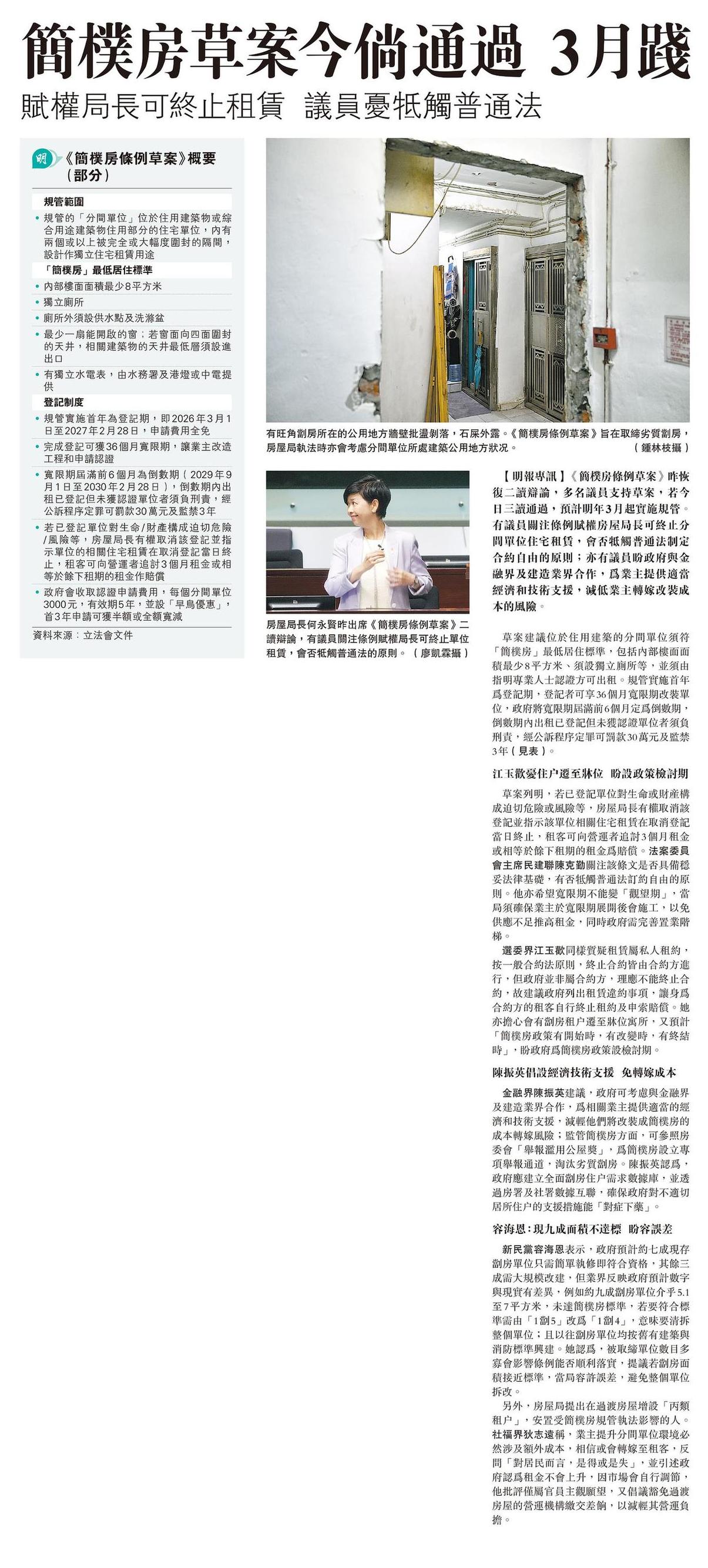 簡樸房草案今倘通過 3月踐 賦權局長可終止租賃 議員憂牴觸普通法