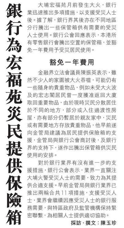 銀行為宏福苑災民提供保險箱